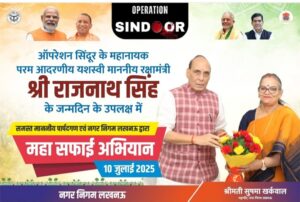 लखनऊ। ऑपरेशन विजय और ऑपरेशन सिंधूर के महानायक, भारत के यशस्वी रक्षामंत्री एवं लखनऊ के सांसद श्री राजनाथ सिंह के जन्मदिवस (10 जुलाई 2025) के उपलक्ष्य में लखनऊ नगर निगम द्वारा विशेष महा सफाई अभियान आयोजित किया जा रहा है।