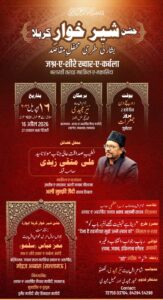 महफ़िल में महफ़िल-ए-फ़ज़ायल मशहूर आलिम *मौलाना अली मुतक़ी जैदी* खिताब करेंगे और कर्बला के पैग़ाम पर रोशनी डालेंगे।